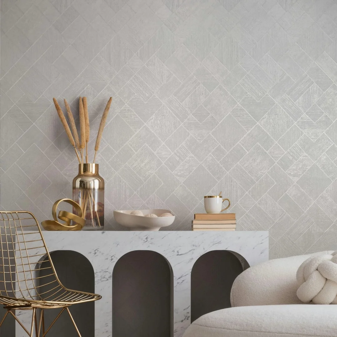 Give your walls a touch of vintage romance: this wallpaper combines a delicate floral relief with elegant gold accents on a patinated background. Ideal for stylish interior design with classical elegance and artistic character.