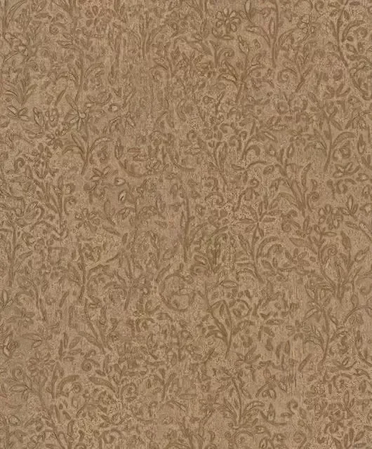 Give your walls a touch of vintage romance: this wallpaper combines a delicate floral relief with elegant gold accents on a patinated background. Ideal for stylish interior design with classical elegance and artistic character.
